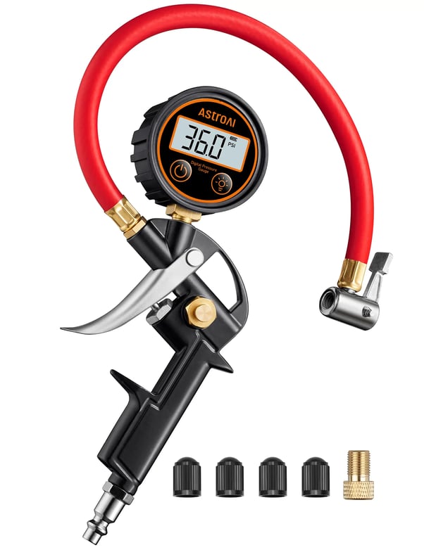 AstroAI T1 Digital Tire Pressure Gauge with Inflator, 3-250 PSI Air Chuck with Pressure Gauge, Heavy Duty with Quick Connect Coupler, Calibrated to ANSI B40.7 Grade 2A