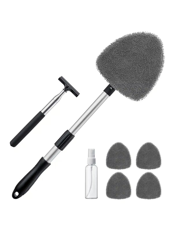 AstroAI Car Windshield Cleaner Tool, Window Cleaning Kit with 39in Car Mirror Squeegee, 4 Reusable Microfiber Pads and Extendable Handle, Gray